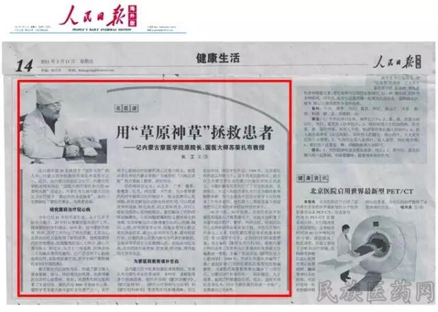 神奇蒙药奇方的出现引起社会各地广泛的关注,人民日报2011年3月11日发表题为《用“草原神草”拯救患者》评论文章,高度评价奇方推荐人我国蒙族医学家、国医大师苏荣扎布,用草原特生植物治疗高血压、冠心病、脑中风,总有效率突破80%。